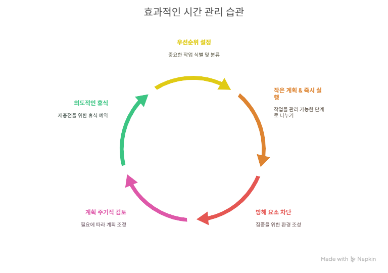 시간 관리 잘하는 사람들의 5가지 습관, 어떠셨나요? 핵심만 콕콕 집어 다시 한번 요약해 드릴게요!