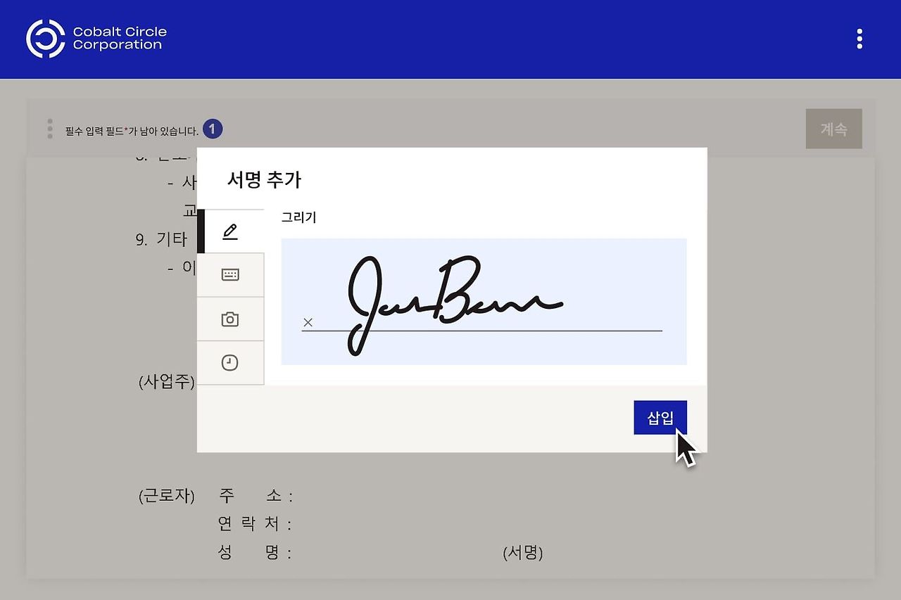 | 편의성 | 인쇄, 서명, 스캔, 발송 등 번거로운 과정 | 언제 어디서든 클릭 몇 번으로 완료 |